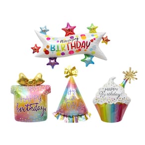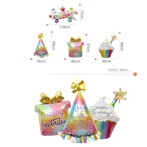 Tema vibrante de aniversário: o conjunto inclui 4 balões de alumínio atraentes com chapéu de aniversário arco-íris, caixa de presente, cupcake e um banner colorido de “Feliz Aniversário”, ideal para criar uma atmosfera de festa divertida e animada. Material de alumínio de qualidade premium: feitos de papel alumínio durável, esses balões são projetados para inflação de ar ou hélio e são perfeitos para decorações duradouras em festas de aniversário, tornando-os adequados para uso interno e externo. Design brilhante e alegre: os balões multicoloridos com confetes e padrões festivos certamente iluminarão qualquer festa de aniversário, com cada peça adicionando um toque divertido à decoração da sua festa. Versátil para todas as idades: esses balões são perfeitos para festas de aniversário de crianças e adultos, oferecendo uma adição alegre e colorida a qualquer evento, seja uma pequena reunião ou uma celebração maior. Fácil de configurar: os balões são simples de inflar e pendurar, o que os torna uma escolha fácil para decorações de festas. Eles tornarão seu evento de aniversário mais memorável e visualmente atraente.