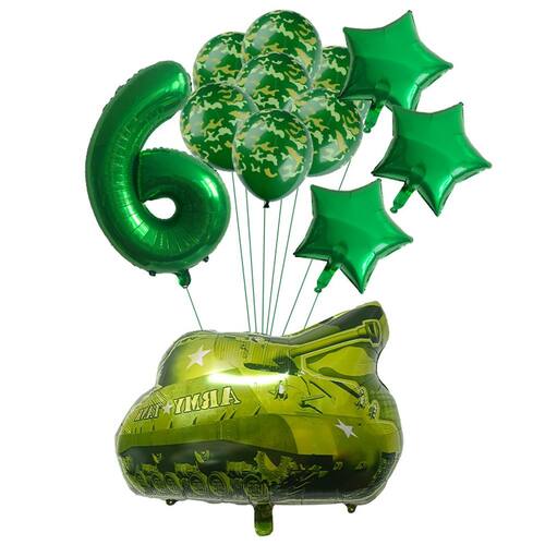 Tema de tanque militar e camuflagem: com um tanque militar e balões de camuflagem, este conjunto é perfeito para uma festa de aniversário com tema militar ou militar para meninos. Balões de alumínio duráveis: feitos de papel alumínio de alta qualidade, esses balões mantêm sua forma e cores vibrantes durante todo o evento, proporcionando uma decoração duradoura. Decoração de festa completa: o conjunto inclui um grande balão número 6 de 32 polegadas, balão tanque de camuflagem, balões de estrela verde e balões de camuflagem de látex para uma configuração completa de festa. Perfeito para fotos: o balão-tanque do exército e o design de camuflagem criam excelentes oportunidades fotográficas, tornando a festa de aniversário do seu filho ainda mais especial. Decorações versáteis: ideais para festas temáticas do exército, comemorações de aniversário ou qualquer evento que exija um toque divertido e ousado na decoração.