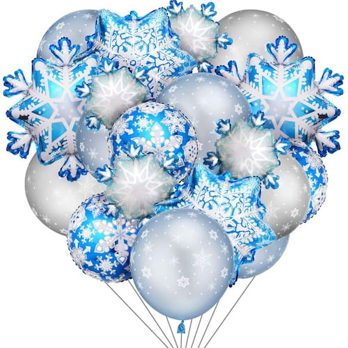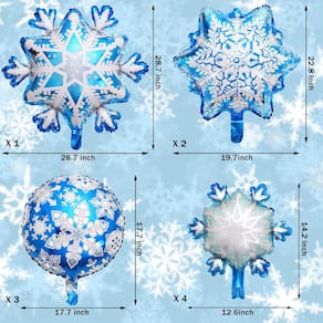 Design delicado: Estampa de floco de neve azul e prata nos balões de látex, e os balões de alumínio em forma de floco de neve fornecidos são bonitos e atraentes, feitos para festas ou ocasiões importantes, permitem que você tenha uma memória inesquecível e incrível. Material confiável: Nossos balões de floco de neve são feitos de látex e folha de qualidade, não tóxicos e seguros, o que é durável, é uma boa decoração para sua festa em qualquer lugar. Vários usos: Adequado para festa temática de inverno congelado, decoração de férias de Natal, reunião de amigos, bons balões de alumínio de inverno e balões de floco de neve de látex para decorar seu quarto, janela, jardim, etc., criando uma atmosfera animada de Natal e inverno. Especificações: Quantidade: 60 peças Material: látex, folha Tamanho: como mostrado na imagem. A embalagem inclui: 25 balões azuis de floco de neve. 25 balões de floco de neve prateados. 10 balões de floco de neve de alumínio. Notas importantes: Considere uma pequena diferença devido à medição manual. Considere uma ligeira diferença de cor devido a diferenças de monitor. Não inflar demais e mantenha-o longe do calor, fogo ou qualquer coisa apontada. - Design delicado: estampa de floco de neve azul e prata nos balões de látex, e os balões de alumínio em forma de floco de neve fornecidos são bonitos e atraentes, feitos para festas ou ocasiões importantes, permitem que você tenha uma memória inesquecível e incrível - Material confiável: nossos balões de floco de neve são feitos de látex e folha de qualidade, não tóxicos e seguros, o que é durável, é uma boa decoração em sua festa em qualquer lugar - Método de uso: são espessos o suficiente e fáceis de serem inflados, são seguros para decoração interna e externa, também podem ser preenchidos com hélio - Uso múltiplo: adequado para festa temática de inverno congelado, decoração de férias de Natal, reunião de amigos, bons balões de alumínio de inverno e balões de floco de neve de látex para decorar seu quarto, janela, jardim, etc., criando uma atmosfera animada de Natal e inverno - Detalhes do pacote: você receberá 50 peças de balões de impressão de flocos de neve em 2 cores, cores azul e prata, 25 peças por cada cor, 10 balões de folha de floco de neve, totalizando 60 peças quantidade suficiente para atender às suas necessidades de decoração