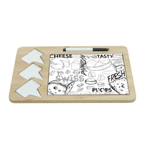 Este Conjunto Bandeja de Bambu com Cerâmica e 3 Letreiros com Marcador Cheese Design com certeza fará a diferença na sua mesa na hora de servir seus amigos e familiares.