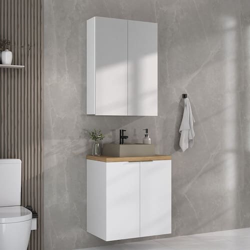 Funcionalidade e estilo em um só conjunto. Acabamento da Porta: BP Melamínico Acabamento da Prateleira: BP Melamínico Acompanha Cuba: Não Acompanha Gaveteiro: Não Acompanha Manual de Instalação: Sim Acompanha Parafusos Para Fixação Na Parede: Sim Acompanha Tampo: Sim Altura do Espelho: 80 cm Ambiente Principal: Banheiro codigo_ean: 7900288205544 Complexidade da Montagem: Média: pode ser montado por mais de uma pessoa e/ou necessite de maior conhecimento para montagem Cor: Branco / Carvalho Cor do Produto: Branco / Carvalho Cor Flex: Não Escala de Brilho: Fosco Escala de Brilho da Porta: Fosco Escala de Brilho da Prateleira: Fosco Espessura do Espelho: 3 mm Formato do Espelho: Retangular Formato Espelheira: Retangular Furação para Cuba e Torneira: Não Itens Inclusos: 1 Gabinete, 1 Espelheira, Kit Ferragens e Manual de Montagem Largura do Espelho: 30 cm Linha ou Coleção: Marrom Manual de Montagem e Instalação: https://product-hub-prd.madeiramadeira.com.br/727723323/documents/10b35350-cf4c-4195-b813-b66c18339be13114829183017540826619568.pdf Marca: Estilare Material da Porta: MDF e Espelho Material da Prateleira: MDF Material do Tampo: MDF Material Principal: MDF Medida da Espelheira (A x L x P): 80cm x 60cm x 16,5cm Medida do Gabinete (A x L x P): 65cm x 60cm x 40cm Montagem Flex: Não Necessita Montagem: Sim Origem do Produto: Nacional Peso: 40,82 kg Peso Máximo por Prateleira: 7 kg Possui Espelheira: Sim Possui Gabinete: Sim Possui Gavetas: Não Possui iluminação: Não Possui Nichos: Não Possui Pés: Não Possui Porta de Vidro: Não Possui Recorte No Tampo Para Cuba: Não Possui Recorte No Tampo Para Misturador: Não Possui Rodízio: Não Possui Sifão: Não Possui Tampo: Sim Possui Tampo de Vidro: Não Produto Montado: Sim Quantidade de Espelhos: 02 Espelhos com Tamanhos Iguais Quantidade de Prateleiras: 03 Recomendações de Uso, Manutenção e Limpeza: Limpar com um pano levemente umedecido Sistema de Montagem: Parafusos, cantoneiras, minifix e cavilhas Suporte para Toalheiro: Não Tamanho do Espelho (A x L): 80 x 30 Tamanho do Gabinete: Médio: de 60cm a 80cm de largura Tipo de Dobradiça/Corrediça da Porta: Com Amortecedor Tipo de Fixação do Espelho: Silicone Tipo de Gabinete: Gabinete Aéreo Tipo de Porta: Abrir Tipo de Puxador da Porta: Alumínio Válvula indicada: Não específica