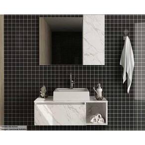Armário de Banheiro c/Espelho Suspenso BN3602 1 Porta 80cm cor Mármore Branco - Tecno Mobili