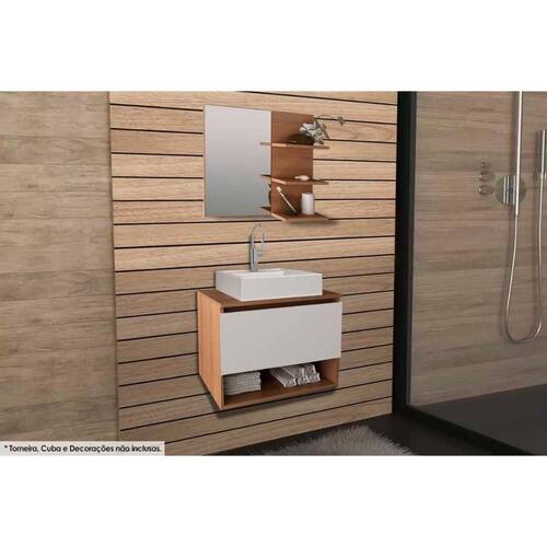 Conjunto De Banheiro Armário C/ Espelho Bn3608 E Balcão Suspenso Bn3606 S/cuba Pia 60cm Cor Amêndoa - Tecno Mobili