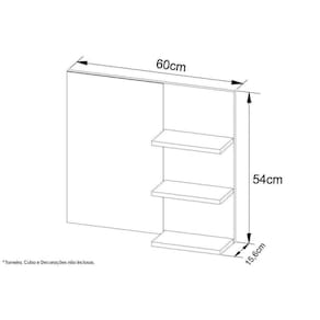 Dimensões(Cm): Comprimento(Profundidade): 15,6cm x Largura: 60cm x Altura: 54cm Certificação de Qualidade - Qualidade Aprovada Estrutura do Móvel - Estrutura 100% MDP Tipo de Pintura - UV Tipo de Acabamento da Pintura - Semi Brilho Quantidade de Prateleiras - 3 Prateleiras Garantia - 3 meses Certificação de Qualidade - Qualidade Aprovada