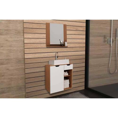 Conjunto de Banheiro Armário c/ Espelho BN3610 e Balcão Suspenso BN3605 c/ Cuba Pia BN3600 60cm cor Amêndoa/Branco - Tecno Mobili Abaixo segue os produtos do KIT: Conjunto de Banheiro Armário c/ Espelho BN3610 e Balcão Suspenso BN3605 c/ Cuba Pia BN3600 60cm cor Amêndoa/Branco - Tecno Mobili