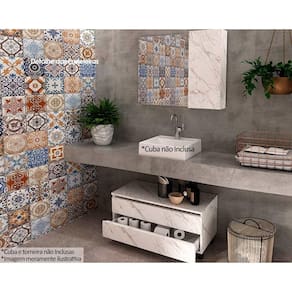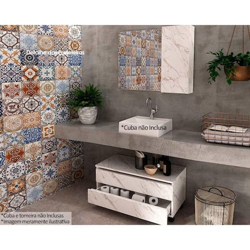 Conjunto de Banheiro Balcão c/ Rodizios BN3603 s/ Cuba 80cm e Armário c/ Espelho BN3602 cor Mármore Branco - Tecno Mobili Abaixo segue os produtos do KIT: Conjunto de Banheiro Balcão c/ Rodizios BN3603 s/ Cuba 80cm e Armário c/ Espelho BN3602 cor Mármore Branco - Tecno Mobili