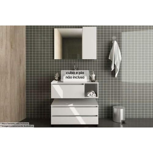 Conjunto de Banheiro Balcão Suspenso BN3601 + Balcão c/ Rodizios BN3603 s/ Cuba 80cm e Armário c/ Espelho BN3602 Branco - Tecno Mobili Abaixo segue os produtos do KIT: Conjunto de Banheiro Balcão Suspenso BN3601 + Balcão c/ Rodizios BN3603 s/ Cuba 80cm e Armário c/ Espelho BN3602 Branco - Tecno Mobili
