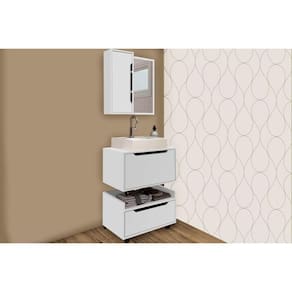 Gabinete de Banheiro Suspenso c/ Rodizio BN3647 s/ Cuba c/ 1 Gaveta 60cm Branco - Tecno Mobili