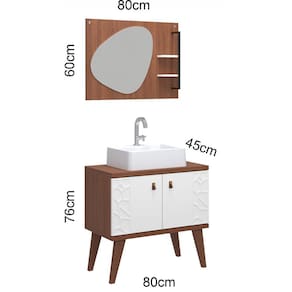 • Medidas: BALCÃO: comprimento 80cm x profundidade 45cm x altura 76cm / Espelheira: comprimento 80cm x profundidade 12cm x altura 60cm