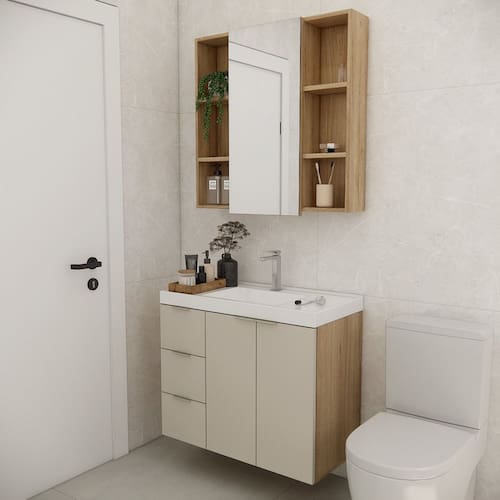 Conjunto de Banheiro com Cuba Vittare 80Cm Estilare Cnj5007 Carvalho/Nude Gaveta Esquerda