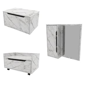 Quando falamos de banheiro pensamos em bem-estar. Pois o banheiro é onde a gente recarrega nossa energia vital, idealiza sonhos, e realiza toda a manutenção necessária para uma saúde física e mental. Com design prático, o móvel entrega ao ambiente toques de modernidade e elegância. Funcional, acondiciona produtos de higiene e beleza, porta escova, artigos de limpeza, entre tantos outros objetos pessoais. Possui 1 porta basculante com frente usinada e tampo. Estrutura em MDP e acabamento em pintura UV. O produto não acompanha cuba. O Armário possui 1 gavetas com frente usinada, tampo e rodízio que permite movimento e a Espelheira possui 1 porta com frente usinada, espelho de 560x309x3mm e 3 prateleiras internas. Altura do Conjunto: 60 cm Ambiente: null Ambiente Principal: Banheiro codigo_ean: 7909903826942 Cor: Mármore/Branco Cor do Produto: Mármore/Branco Informação Complementar: 1x Gabinete para Banheiro com 1 Porta 60cm BN3646 Mármore Branco Largura: 60 cm Altura: 33 cm Peso: 9,3 kg Profundidade: 38,7 cm Necessita Montagem: Sim