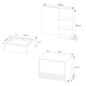 O Kit para Banheiro é a escolha ideal para dar um toque de elegância e organização ao seu espaço. Com um design contemporâneo, ele transforma o ambiente em um local mais convidativo e prático. Fabricado com materiais de alta qualidade, o kit oferece durabilidade e um visual sofisticado, tornando seu banheiro ainda mais funcional e bonito. CARACTERÍSTICAS TÉCNICAS: - Produzida em MDP de 15 mm - Acabamento UV na cor Amêndoa - Cuba em Mármore Sintético - Acompanha Espelho - Porta Basculante com Articulador e Dobradiças Metálicas - Gaveta com Corrediças Metálicas - Puxador tipo Cava - Balcão Suspenso *Kit Composto por Gabinete Suspenso (3613), Espelheira (3608) e Cuba (3630) INFORMAÇÕES TÉCNICAS: 3613: Alt. 44,7 cm x Larg. 60 cm x Prof. 38,7 cm x P. 12,65 kg 3608: Alt. 54 cm x Larg. 60 cm x Prof. 15,6 cm x P. 6,2 kg 3630: Alt. 11,5 x Larg. 35 x Prof. 334 cm P. 5,5 kg INFORMAÇÕES ADICIONAIS: - ATENÇÃO: Não trabalhamos e não nos responsabilizamos pela montagem do móvel. Antes da montagem conferir se o produto está de acordo com o que comprou, produto montado e danificado pela montagem não será aceito troca. Montagem e instalação por conta do comprador. - As imagens ambientadas são meramente ilustrativas e podem apresentar itens que não compõe o produto. As cores do produto podem variar de acordo com o monitor, a iluminação do ambiente ou sua percepção visual. - Limpeza: Deve ser feita com pano macio e seco ou levemente umedecido com água e sabão neutro. Não devem ser utilizados abrasivos como palha de aço e objetos cortantes. -Garantia para defeitos de fabricação conforme Código de Defesa do Consumidor.