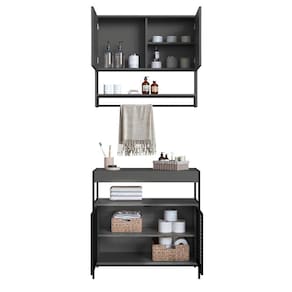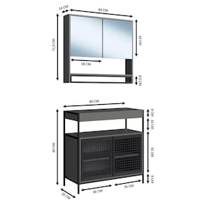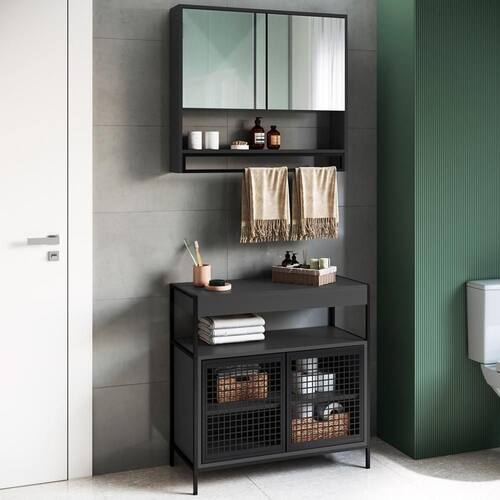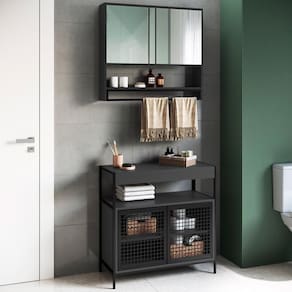 Tenha no seu banheiro ou lavabo o Conjunto de Banheiro Gabinete E Espelheira, uma combinação perfeita de funcionalidade e estilo. O gabinete, com portas vazadas em metal, garante ventilação ideal e um toque moderno, enquanto a espelheira oferece praticidade com suas prateleiras, duas portas com espelho e um toalheiro integrado. Este conjunto alia a sofisticação do estilo industrial, trazendo organização dos seus objetos para o seu espaço. Ideal para armazenar itens de higiene e beleza, é a escolha certa para quem busca um design moderno. Este móvel chegará na sua casa separado em 02 volumes.