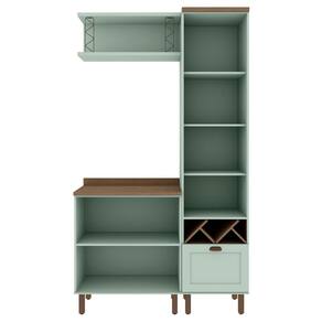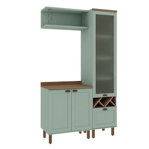 Além do balcão principal, o conjunto inclui um armário com porta de vidro Mini Boreal, molduras refinadas e um gavetão espaçoso.