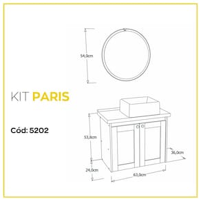 A linha Paris possui design inspirado no estilo provençal misturado com o moderno, trazendo a sensação de equilíbrio e serenidade, criando uma estética agradável e que deixa seu ambiente mais charmoso e com detalhes que marcam, ideal para quem procura beleza e estilo. Acabamento da Cuba: Gel Acabamento da Porta: BP Acabamento da Prateleira: BP Acompanha Cuba: Sim Acompanha Manual de Instalação: Sim Acompanha Parafusos Para Fixação Na Parede: Sim Acompanha Tampo: Sim Altura do Espelho: 53,8 cm Ambiente Principal: Banheiro codigo_ean: 7909903708941 Complexidade da Montagem: Baixa: pode ser montado por uma pessoa sozinha Comprimento da Prateleira: 60 cm Cor: Gianduia Cor da Cuba: Branco Cor do Produto: Gianduia Cor Interna: Branco Escala de Brilho: Amadeirado Escala de Brilho da Porta: Semi-Fosco Escala de Brilho da Prateleira: Semi-Fosco Espessura do Espelho: 0,3 mm Formato do Espelho: Redondo Furação para Cuba e Torneira: Sim Itens Inclusos: Embalagem, manual de montagem, prateleiras, parafusos e suporte para fixação Largura do Espelho: 54 cm Linha ou Coleção: Linha Paris Manual de Especificação Técnica: https://product-hub-prd.madeiramadeira.com.br/910379/documents/f08a497a-0541-4ada-a526-aa5b2c55ddad1982607327617165746219919.pdf Manual de Montagem e Instalação: https://product-hub-prd.madeiramadeira.com.br/910379/documents/6de1deef-af16-4d5e-b8cc-dc8199c4069a1982606327617165746193555.pdf Material da Cuba: Mármore Sintético Material da Porta: BP Material da Prateleira: MDP Material do Tampo: Mármore Sintético Material Principal: BP Medida da Cuba (C x L x P): 35,5X32X13 Medida da Espelheira (A x L x P): 53,8X54X0,15 Medida do Gabinete (A x L x P): 53,8X36X63 Necessita Montagem: Sim Origem do Produto: Nacional Peso: 31,62 kg Peso Máximo por Prateleira: 5 kg Possui Espelheira: Sim Possui Gabinete: Sim Possui Gavetas: Não Possui iluminação: Não Possui Nichos: Não Possui Pés: Suspenso Possui Porta de Vidro: Não Possui Rodízio: Não Possui Sifão: Não Possui Tampo: Sim Produto Montado: Sim Recomendações de Uso, Manutenção e Limpeza: Nunca utilize esponja tipo bombril para a limpeza de seu armário e nem produtos abrasivos, para limpeza utilize uma flanela limpa e seca. A exposição a luz solar pode modificar a cor único do produto. Sistema de Montagem: Parafusos Suporte para Toalheiro: Não Tamanho do Espelho (A x L): 53,8X54 Tipo de Dobradiça/Corrediça da Porta: Aço Tipo de Fixação do Espelho: Fita Dupla Face Tipo de Porta: Abrir Tipo de Puxador da Porta: Redondo