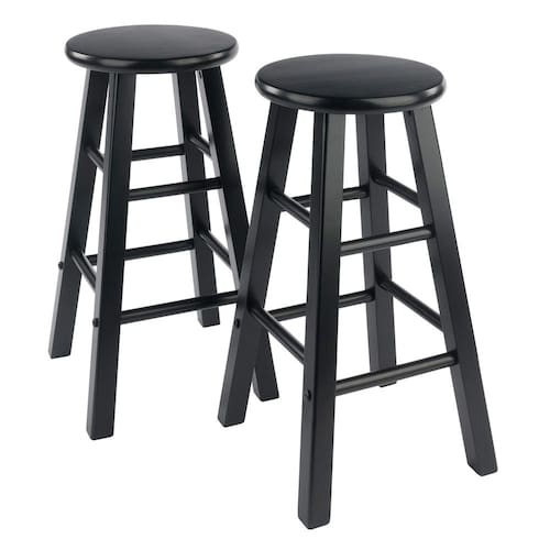 MadeiraWinsome Element Conjunto de 2 peças de banco de balcão de 61 cm, acabamento preto, madeira maciça, design moderno
