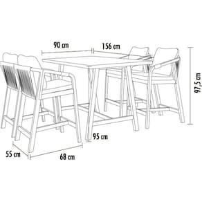 Este conjunto de bar nao e apenas esteticamente agradavel, mas tambem funcional. A mesa de bar e espacosa o suficiente para acomodar bebidas, petiscos e ate mesmo jogos de tabuleiro, enquanto as cadeiras proporcionam um assento confortavel para longas conversas e risadas. As cadeiras sao robustas e tem um design ergonomico para garantir o maximo conforto, mesmo durante longos periodos de uso.