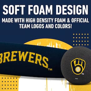 Franklin Sports MLB Milwaukee Brewers Team Jumbo Espuma Taco e Bola Conjunto de 53 cm, Azul - A bola de espuma grande MLB é perfeita para o jogador iniciante - Feito com espuma de alta densidade e logotipos e cores oficiais da equipe! - Apoie o seu time favorito da MLB e veja sua pequena liga balançar para as cercas - Ótima maneira de ensinar qualquer jovem jogador a coordenação óculo-manual, diversão incrível no quintal! - Conjunto de taco e bola jumbo de 53 cm, recomendado para maiores de 3 anos - Material de espuma de borracha - Bola de espuma de poliuretano de 10 cm (4") - Perfeito para mostrar seu apoio ao seu time favorito