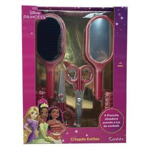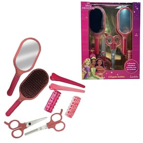 Transforme cada penteado em um verdadeiro conto de fadas com o Conjunto de Beleza Meu Novo Estilo Disney Princesas! Com espelho, escova, 2 tesouras, 2 presilhas e 2 rolos de cabelo, este conjunto leva as crianças a um mundo de imaginação ao lado das Princesas da Disney. Perfeito para recriar os looks das princesas e inventar novos estilos com muito brilho e encanto!