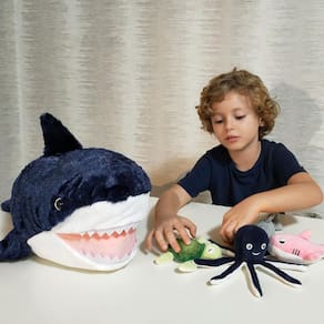 O conjunto de 5 animais de pelúcia de tubarão da MaoGoLan com 4 pequenos brinquedos de pelúcia de animais marinhos é o presente perfeito para amantes de animais marinhos, chás de bebê e lembrancinhas de festa. Este conjunto inclui uma pelúcia de tubarão, pelúcia de tartaruga, tubarão-martelo, pelúcia de polvo e um pequeno animal de pelúcia de tubarão rosa. Cada brinquedo de pelúcia é feito de materiais de alta qualidade para garantir durabilidade e suavidade. A pelúcia de tubarão apresenta detalhes realistas que fazem com que pareça um tubarão real, enquanto os brinquedos de pelúcia tartaruga, tubarão-martelo, polvo e tubarão rosa são igualmente adoráveis e fofos. Estas pelúcias com tema oceano vêm com uma bolsa conveniente com zíper que pode ser usada para armazenar itens pequenos ou como decoração para chás de bebê e festas. O conjunto oferece companhia calorosa para crianças e adultos, tornando-o um presente ideal para aniversários, Natal ou qualquer ocasião especial. Se você está procurando um presente exclusivo para um entusiasta de animais marinhos ou uma adição fofa à sua própria coleção de pelúcia, o conjunto de animais de pelúcia de tubarão MaoGoLan com 5 peças certamente trará alegria e prazer. Prepare-se para mergulhar nas profundezas da imaginação com essas criaturas marinhas adoráveis e abraçáveis. - Conjunto de brinquedos de pelúcia marinhos 5 em 1: o conjunto de 5 peças de animais de pelúcia de tubarão MaoGoLan com 4 pequenos animais marinhos é feito de materiais amigos da pele, garantindo durabilidade e suavidade. Cada brinquedo de pelúcia, incluindo o tubarão de pelúcia, tartaruga de pelúcia, tubarão-martelo, pelúcia de polvo e pequeno animal de pelúcia de tubarão rosa, é feito com atenção aos detalhes e características realistas. - Fácil armazenamento e transporte: este conjunto de tubarões de pelúcia vem com uma bolsa com zíper que adiciona elementos decorativos e funcionais. Pode ser utilizado para armazenar o pequeno conjunto de brinquedos de pelúcia ou atuar como uma decoração encantadora. A bolsa oferece maior conveniência e garante que os brinquedos de pelúcia estejam sempre ao alcance. - Ideia de presente versátil: se você está procurando um presente exclusivo para um entusiasta de animais marinhos ou uma adição fofa à sua própria coleção de pelúcia, este conjunto de bichos de pelúcia é perfeito. Com seu design adorável e valor educacional, estas pelúcias com tema oceano oferecem companhia calorosa para crianças e adultos. Eles são um presente ideal para aniversários, Natal, chás de bebê ou qualquer ocasião especial. - Companheirismo é o melhor presente: seja uma criança ou um adulto, eles vão adorar esta série de brinquedos de pelúcia macios e fofinhos do mar. Divirta-se juntos, compartilhe felicidade e segredos. Nossos lindos bichos de pelúcia de tubarão são o presente perfeito para qualquer feriado ou qualquer ocasião. Seria ótimo compartilhar a alegria e o calor com os outros! - Alegria e prazer esperam: mergulhe nas profundezas da imaginação com essas criaturas marinhas adoráveis e abraçáveis. O conjunto de 5 animais de pelúcia de tubarão da MaoGoLan com 4 pequenos brinquedos de pelúcia de animais marinhos espalhará alegria e prazer. Com seu design adorável, qualidade premium e uso versátil, estas pelúcias oceânicas certamente trarão sorrisos aos rostos dos amantes de animais marinhos de todas as idades.