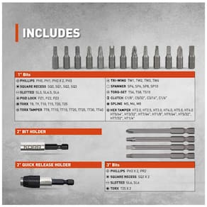 Aço proprietário e processo de tratamento térmico para máxima resistência e durabilidade. Aço resistente ao impacto modificado S2 endurecido para maior vida útil da broca. Pontas magnéticas fresadas CNC em porta bits para aderência suprema. Classificação de impacto para uso pesado Marca: Não Informado