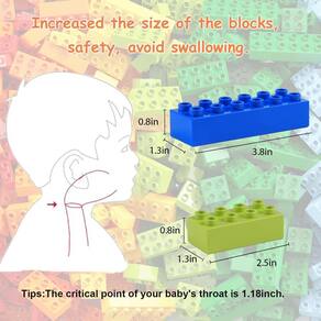 Conjunto grande de blocos de montagem: - 5 diferentes formas grandes: 1 x 2 (20 peças), 2 x 2 (40 peças), 2 x 3 (15 peças), 2 x 4 (15 peças), 2 x 6 (10 peças) - 15 cores clássicas aleatórias: vermelho, azul, verde, rosa, amarelo, laranja, marrom, preto, cinza escuro, cinza claro, verde claro, branco, roxo e azul claro. Conteúdo da embalagem: 100 peças de blocos de construção grandes. 1 placa de base. -Material: ABS de alta qualidade. - Idade adequada: meninos e meninas a partir de 3 anos - Blocos de construção grandes para crianças: inclui 100 blocos grandes e 1 placa de base, 5 formas e 15 , o conjunto de blocos tem 2 x 2 (40 peças), 2 x 3 (15 peças), 2 x 4 (15 peças), 2 x 6 (10 peças), 2 x 1 (20 peças) e placa de base 16 x 16 (1 peça), tijolos e placa de base são compatíveis com todas as principais marcas. - Aprender enquanto construi: formas mais diferentes e tijolos multicoloridos proporcionaram mais chance de desenvolver o potencial das crianças. No processo de construção, as crianças melhorarão a coordenação olho-mão, exercitam a capacidade de distinguir formas e cores e melhorar a imaginação e a criatividade. - Material ABS de alta qualidade: os brinquedos de blocos de construção passam por certificação rigorosa, segurança, não tóxico e livre de odores estranhos. Estes tijolos de construção são grandes o suficiente para evitar risco de asfixia. - Fácil de instalar e remover: nossos blocos grandes são fáceis de montar e se ajustam firmemente. A placa de base é para você, as crianças construirão quaisquer estruturas de blocos grandes em cima dela. Você não precisa se preocupar com solidez. Quando as crianças querem criar outras formas, elas podem facilmente separá-las. - Presente maravilhoso e clássico para meninos e meninas: estes blocos são embalados em uma caixa externa requintada, é um presente ideal para aniversário, Halloween, Ação de Graças, Natal, etc. Este conjunto grande de blocos de construção é adequado para crianças a partir de 18 meses.
