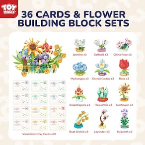 Deixe o amor e a criatividade florescerem com o conjunto de 36 peças de blocos de montar TOY Life Flower! Este encantador conjunto de artesanato apresenta pequenas plantas de mini blocos de construção, permitindo que as crianças criem suas próprias flores coloridas. Perfeito para trocas de sala de aula, prêmios ou como um presente atencioso, o conjunto também inclui cartões de presente encantadores para adicionar um toque pessoal. Projetado para inspirar brincadeiras imaginativas e expressão artística, este conjunto de blocos de construção botânicos de flores é uma maneira única e memorável de celebrar a estação do amor. Seja para artesanato, presentes ou brincadeiras criativas, este conjunto certamente tornará a festa de aniversário ainda mais especial para crianças de todas as idades.