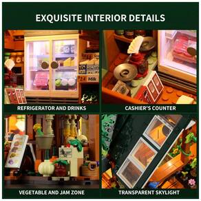 Fabricado em plástico ABS intertravado, o kit de 1523 peças suporta montagem manual avançada, ideal para exposição em vitrines ou combinação com outros conjuntos da coleção Farm Building. Acompanha manual em papel e kits LED.