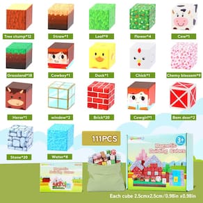 - Ranch Build Your Magnetic World: 111 unidades Esses blocos magnéticos abrem um mundo de possibilidades. Explore uma floresta vibrante cheia de flores de cerejeira e prados de um lado, árvores, vacas, animais e crianças podem construir fazendas e criar seu próprio mundo de fazenda!