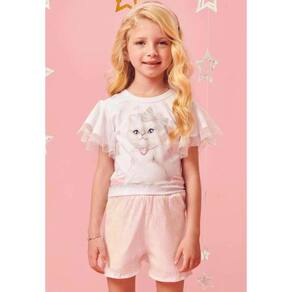 BLUSA MC : FRENTE:92% POLIÉSTER, 8% ELASTANO, COSTAS/MANGA:97% ALGODÃO, 3% ELASTANO, TULE:90% POLIÉSTER, 10% ELASTANO