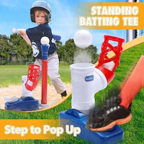 Conjunto de bolas Eaglestone 2 em 1 para crianças, conjunto de bolas para crianças pequenas com máquina de arremessar Step on, camiseta de rebatidas de teeball de altura ajustável, taco de bola T e 6 bolas. Presente de brinquedo de beisebol ao ar livre para meninos e meninas — Jogo de arremesso 2 em 1: nosso conjunto de bolas de mesa 2 em 1 vem com uma máquina de arremesso pop-up, suporte dobrável para bastões e bolas de plástico para jovens e 6 bolas de beisebol de plástico. Obtenha tudo o que você precisa para jogar beisebol de DUAS maneiras. Desperte o amor de seu filho por esportes e cultive seus sonhos de se tornar um astro do beisebol. Permite que ele voe como seus atletas favoritos, provando que, com determinação, tudo é possível! - Altura de lançamento ajustável: personalize a experiência de lançamento com nosso recurso de altura de lançamento ajustável. Com uma altura máxima de estouro de.. Você pode ajustar facilmente a altura usando a chave de fenda incluída. Basta colocar as bolas de beisebol de plástico no alimentador automático de bolas e jogá-las no ar. Crie boas lembranças com seu pequeno rebatedor enquanto vocês dois compartilham a alegria de fazer home runs juntos. - Camiseta e bastão dobráveis: nosso conjunto de bola de mesa foi projetado com um suporte de teeball elástico ('-?) e um bastão (? ?). Isso permite que o conjunto de beisebol se adapte a crianças de 1 a 3, 3 a 5, 8 anos, proporcionando uma experiência de treinamento versátil. Abrace o poder do jogo e da união familiar com este incrível conjunto de t-ball. Uma vida não é importante, exceto pelo impacto que tem em outras vidas. - Desperte o interesse das crianças pelos esportes: melhore as habilidades de rebatidas, as habilidades motoras finas, a coordenação olho-mão e a precisão de seu filho por meio da prática de swing e rebatidas. Nosso conjunto de bola de camiseta não é apenas um brinquedo divertido para crianças, mas também uma ferramenta educacional para desenvolver habilidades importantes. Inspire o trabalho em equipe e o espírito esportivo com este incrível conjunto de t-ball. O talento vence jogos, mas o trabalho em equipe e a inteligência vencem campeonatos. - Brinquedos internos e externos ideais para crianças: nosso conjunto Tball é o brinquedo de Natal perfeito e presentes de aniversário para meninos e meninas. Fácil de montar. Incentive brincadeiras ao ar livre e estilos de vida ativos, promovendo o desenvolvimento de habilidades e o amor pelo jogo de beisebol. Liberte o espírito competitivo de seus filhos e crie memórias duradouras de risos e amizade. Este conjunto de t-ball é o melhor brinquedo ao ar livre para festas e feriados!