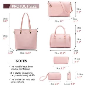 As dimensões do conjunto de bolsas para mulheres jovens 2E são sacola grande 35,05 centímetros de comprimento x 12,7 centímetros de largura x 27,94 centímetros de altura sacola média 25,91 centímetros de comprimento x 12,95 centímetros de largura x 19,05 centímetros de altura bolsa de ombro 27,94 centímetros de comprimento x 7,87 centímetros de largura x 19,81 centímetros de altura bolsa de mão 13,97 centímetros de comprimento x 9,4 centímetros de altura bolsa 19,05 centímetros de comprimento x 9,4 centímetros de altura porta chaves 5,59 centímetros de comprimento x 9,4 centímetros de altura