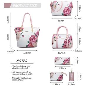 Importado Definitivamente vale a pena 2E jovens 6pcs bolsas de grife para mulheres Bolsa rosa design de correspondência de cores, interpretação de um senso de moda simples. Design de interior com várias camadas, você pode facilmente em qualquer situação. Uma grande sacola durável pode conter um laptop ou tablet de 14 polegadas, documentos ou livros A4 e seus sapatos de salto alto favoritos. A bolsa de ombro em bolsa pode conter porta moedas, carteira longa, óculos de sol, guarda chuva, cosméticos e outros itens. A bolsa tipo clutch da E youth pode conter suas chaves, batom e outros itens pequenos Estas bolsas e bolsas 2E jovens têm hardware atualizado, pontos fortes, zíper durável, você pode usar bolsas femininas 2E jovens definidas por um longo tempo. E essa bolsa para mulher não tem cheiro, as bolsas 2E jovem para mulher podem ser um presente para aniversários, datas comemorativas, dia dos namorados, natal, formaturas, dia das mães e qualquer outro dia especial Material das bolsas 2E youth 6pcs para mulheres use couro sintético liso como material externo. A costura é bem feita, pois corre suave e uniformemente, é confortável ao toque. Altamente anti arranhões e resistente a rasgos, não é fácil de sair de forma.O material interno da bolsa 2E jovem é poliéster. Com zíperes suaves e duráveis. Dimensões do conjunto de bolsas femininas 2E jovem bolsa grande 35 x 11 x bolsa do meio 25 x 12 x bolsa de ombro 27 x 7 x bolsa de mão 13 x bolsa 17 x porta chaves 5 x . Você pode usar 2E jovens bolsas juntos ou individualmente. Adequado para uso no dia a dia Marca: Não Informado