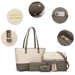 Material Couro Sintético tecido, Poliéster forro. Tamanho Bolsa grande 33 x 26,5 x 12,69 centímetros, Bolsa transversal 26 x 9,49 x 19 centímetros, Carteira 20 x 10 x 3 centímetros, Porta cartão 10,5 x 7,5 x 1 centímetros. Peso total cerca de 1,05 kg. Por favor, você pode consultar o tamanho antes de comprá lo. Obrigado. Bolsos Um compartimento principal com zíper, um bolso interno com zíper, um bolso traseiro e dois bolsos embutidos. 4 peças uma bolsa grande uma bolsa mensageiro bolsa carteira porta cartões. Perfeito para namorar, fazer compras, trabalhar, viajar, vocação, festa e outras ocasiões e manter seus itens diários bem organizados. Material de ótima qualidade, super fofo e tamanho perfeito. Bem feito e muito resistente Marca: Não Informado