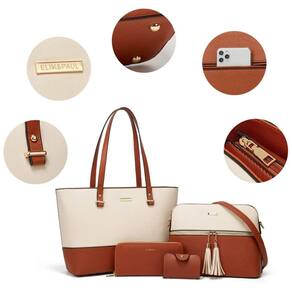 Conjunto de Bolsas Femininas em Couro Sintético 4 Peças com Carteira, Lovematch, Bege e Marrom - Branco - Regulável