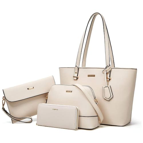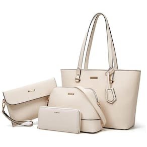 Material Couro Sintético tecido, Poliéster forro. Tamanho Bolsa grande 33 x 26,5 x 12,69 centímetros, Bolsa transversal 26 x 9,49 x 19 centímetros, Carteira 20 x 10 x 3 centímetros, Porta cartão 10,5 x 7,5 x 1 centímetros. Peso total cerca de 1,05 kg. Por favor, você pode consultar o tamanho antes de comprá lo. Obrigado. Bolsos Um compartimento principal com zíper, um bolso interno com zíper, um bolso traseiro e dois bolsos embutidos. 4 peças uma bolsa grande uma bolsa mensageiro bolsa carteira porta cartões. Perfeito para namorar, fazer compras, trabalhar, viajar, vocação, festa e outras ocasiões e manter seus itens diários bem organizados. Material de ótima qualidade, super fofo e tamanho perfeito. Bem feito e muito resistente Marca: Não Informado
