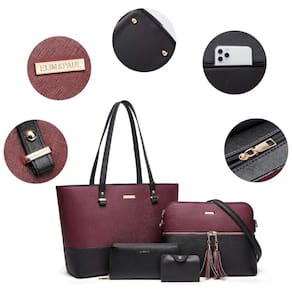 Material Couro Sintético tecido, Poliéster forro. Tamanho Bolsa grande 33 x 26,5 x 12,69 centímetros, Bolsa transversal 26 x 9,49 x 19 centímetros, Carteira 20 x 10 x 3 centímetros, Porta cartão 10,5 x 7,5 x 1 centímetros. Peso total cerca de 1,05 kg. Por favor, você pode consultar o tamanho antes de comprá lo. Obrigado. Bolsos Um compartimento principal com zíper, um bolso interno com zíper, um bolso traseiro e dois bolsos embutidos. 4 peças uma bolsa grande uma bolsa mensageiro bolsa carteira porta cartões. Perfeito para namorar, fazer compras, trabalhar, viajar, vocação, festa e outras ocasiões e manter seus itens diários bem organizados. Material de ótima qualidade, super fofo e tamanho perfeito. Bem feito e muito resistente Marca: Não Informado