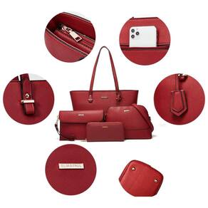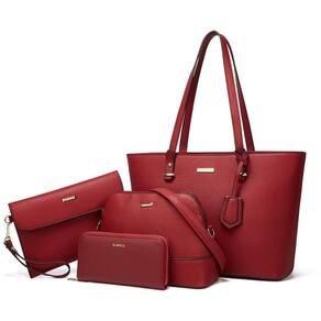 Conjunto de Bolsas Femininas em Couro Sintético 4 Peças com Carteira, Lovematch, Vermelho - Branco - Regulável