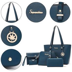 MATERIAL Feito de couro sintético de alta qualidade e forro de poliéster com ferragens de ouro duráveis. A costura é boa e corre suave e uniformemente, é agradável ao toque. Altamente anti riscos e resistente a rasgos, não é fácil ficar para a de forma. SALA Sacola Um compartimento principal, um bolso interno com zíper e dois bolsos com abertura. 5pcs Bolsa grande bolsa mensageiro carteira carteira titular do cartão. Perfeito para namorar, fazer compras, trabalhar, viajar, vocação, festa e outras ocasiões e manter seus itens diários bem organizados. DESENHOS ESPECIAIS Fechamento superior com zíper. Decorado com uma alça superior, você pode usá lo como bolsa de cima ou bolsa de ombro. Com decoração em folha de bordo parece mais fashion. DIMENSÃO Bolsa 33 x 25 x 12, Altura da alça Bolsa mensageiro 25 x 17 x , Carteira 19 x Bolsa de Mão 24 x Suporte de cartão 11 x Marca: Não Informado