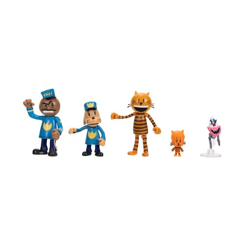 - Inclui bonecos de 6,3 cm de Dog Man, Lil Petey, Petey, Chief e Flippy