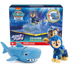 Paw Patrol, Conjunto de bonecos Aqua Pups Chase and Shark, brinquedos infantis para crianças a partir de 3 anos - Figura exclusiva de ação de perseguição: vestindo sua roupa de mergulho azul Aqua Pups, com detalhes reais em escamas de peixe e um capacete de mergulhador super legal, Chase está pronto para lançar e salvar o dia! - PAWSOME SHARK PAL: É hora de outro resgate super carregado com Chase e seu amigo tubarão Pawsome! Prenda Chase às costas do tubarão e role o Shark para frente para ativar sua ação de mastigação de mordida de tubarão! - Brincadeira imaginativa: use sua imaginação para criar suas próprias aventuras emocionantes de resgate de filhotes aquáticos da Patrulha Canina com Chase, Marshall, Rubble, Skye, Rocky e Coral (bonecos vendidos separadamente)! - Colecione todos: expanda sua coleção de brinquedos da Patrulha Canina para meninas e meninos com caminhões de brinquedo, bonecos de ação, carros fundidos, brinquedos de dinossauro, bichos de pelúcia, jogos de tabuleiro, quebra-cabeças e muito mais! - Brinquedos educativos e de aprendizagem: os brinquedos pré-escolares da Patrulha Canina e os brinquedos infantis são ótimos presentes para crianças que gostam de brincar com carrinhos de brinquedo, figuras de brinquedo e conjuntos de brinquedos como uma alternativa a bonecas ou um conjunto de trem! - 1 boneco Chase, 1 amigo aquático - Coberto pelo compromisso Spin Master Care. Veja abaixo os detalhes completos