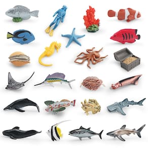 Conjunto de 23 peças de bonecos de animais marinhos, modelos de vida marinha em PVC — inclui peixe-palhaço, estrela do mar, caranguejo, cavalo-marinho, mergulhador e muito mais — Conjunto de brinquedos educativos para crianças, decoração oceânica Descrição: Material: PVC Tamanho: 0,7-7 cm Peso: 139 g Características: variedade de modelos da vida marinha: este conjunto de 24 peças inclui uma grande variedade de criaturas oceânicas, como peixe-palhaço, estrela do mar, caranguejos, cavalos-marinhos e ver, oferecendo uma cena marinha realista. Educativo e divertido: perfeito para crianças de 3 anos ou mais, este conjunto incentiva o aprendizado sobre criaturas marinhas e seus ecossistemas, ao mesmo tempo em que desperta criatividade e brincadeiras imaginativas. Material de PVC de alta qualidade: Feitos de PVC durável e não tóxico, esses bonecos são seguros para crianças e construídos para suportar horas de jogo sem danos. Ótimos para decoração com tema oceânico: esses modelos de animais marinhos são ideais para criar exibições subaquáticas, perfeitas para salas de aula, salas de jogos ou aquários, adicionando um toque marinho vibrante a qualquer espaço. Ideal para entusiastas do oceano: seja como uma ferramenta de ensino, parte de um conjunto de brinquedos ou uma peça de coleção, este conjunto é um ótimo presente para jovens amantes e colecionadores do oceano. O que vem na caixa: 23 x Conjunto de figuras de animais oceânicos