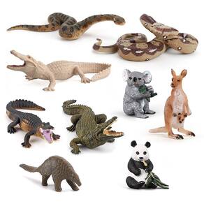 Conjunto de 9 peças de bonecos de animais selvagens, modelos de safári e animais florestais em PVC, incluindo leão, tigre, elefante, crocodilo e muito mais, brinquedos e decorações educativas para crianças de 3 anos ou mais Descrição: Material: PVC Tamanho: 1,7-20,5 cm Peso: 700 g Características: Variedade de animais selvagens: este conjunto inclui 12 estatuetas de animais realistas, com leão, tigre, elefante, crocodilo, lobo, esquilo e muito mais, projetado com detalhes intrincados para uma aparência realista. Brinquedo educativo para crianças: perfeitos para crianças de 3 anos ou mais, esses modelos de animais incentivam o aprendizado sobre a vida selvagem e a natureza, estimulando a curiosidade sobre diferentes espécies e seus habitats. Materiais seguros e duráveis: feitas de PVC não tóxico de alta qualidade, essas estatuetas são seguras para as crianças brincarem e construídas para durar anos brincando ou exibindo. Ideal para exibição e decoração: essas figuras de animais realistas são perfeitas para uso como decoração em quartos, salas de aula ou espaços com temas naturais, adicionando um toque natural a qualquer ambiente. Perfeito para brincar e colecionar: seja para fins educacionais, criativos ou como itens colecionáveis, este conjunto oferece horas de diversão e aprendizado, adequado tanto para crianças quanto para entusiastas de animais. O que vem na caixa: 9 x Conjunto de figuras de animais selvagens