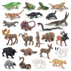Conjunto de 24 peças de bonecos de animais selvagens, estatuetas de animais de safári em PVC, inclui veado, raposa, alce, esquilo, urso, lobo e muito mais, modelos de animais realistas para crianças, brinquedos educativos e decorações Descrição: Material: PVC Tamanho: 1,8-10,5 cm Peso: 161 g Características: Conjunto de estatuetas de animais selvagens: Este conjunto de 24 peças inclui modelos altamente detalhados de animais selvagens como veados, raposas, alces, esquilos, ursos, e lobo, perfeito para brincadeiras educacionais e amantes da vida selvagem. Material de PVC durável: Feitos de PVC não tóxico de alta qualidade, esses bonecos são seguros para crianças e construídos para suportar longas horas de brincadeira ou exibição em sua casa ou sala de aula. Educativas e divertidas: essas estatuetas tornam o aprendizado sobre animais selvagens divertido! Eles são perfeitos para ensinar as crianças sobre a natureza, promover brincadeiras criativas e despertar a curiosidade sobre a vida selvagem. Decorações versáteis: ótimas para festas temáticas, coberturas de bolo ou como parte de uma decoração com tema de vida selvagem. Esses números também funcionam bem como ferramentas educacionais nas salas de aula ou em casa. Tamanho perfeito para brincar: cada boneco varia de 1,8 cm a 10,5 cm, tornando-o fácil de manusear pelas crianças durante o jogo, além de ser ideal para exibição por colecionadores. O que vem na caixa: 24 x Conjunto de figuras de animais selvagens