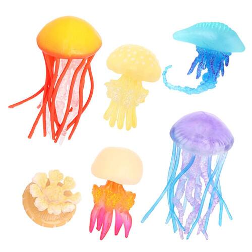 Conjunto de 6 peças de bonecos de medusa, modelos realistas de animais marinhos em PVC — estatuetas educacionais da vida marinha para crianças, brinquedos coloridos de criaturas marinhas para decoração de casa, decorações criativas de animais marinhos Descrição: Material: PVC Tamanho: 2,8-9 cm Peso: 180 g Características: Modelos realistas de medusas: este conjunto apresenta seis estatuetas de medusas vibrantes e detalhadas, cada uma com cores e desenhos diferentes, representando várias espécies dessas fascinantes criaturas marinhas. Educativas e divertidas: ideais para crianças de 3 anos ou mais, essas figuras de medusas são perfeitas para o aprendizado prático, ajudando mentes jovens a explorar as maravilhas do oceano e, ao mesmo tempo, incentivando a criatividade e a brincadeira. Material durável e seguro: feitas de PVC não tóxico e de alta qualidade, essas estatuetas de medusa são projetadas para uso duradouro, oferecendo uma experiência de jogo segura e robusta. Decoração oceânica perfeita: esses modelos coloridos de medusas podem ser exibidos em residências, salas de aula ou escritórios, trazendo um toque de beleza marinha a qualquer espaço e servindo como peças educacionais. Ótimas para entusiastas da marinha: seja como uma ferramenta educacional, um conjunto de brinquedos ou um item decorativo, essas figuras de medusas são uma adição empolgante a qualquer coleção ou espaço com tema oceânico. O que vem na caixa: 6 x Conjunto de bonecos de medusa