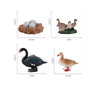 Conjunto de 8 peças de bonecos de pássaros de fazenda, estatuetas de frango, pato, ganso e cisne em PVC — Inclui galinhas nidificando, patinhos, gansinhos, cisne com ovos — Figuras realistas de animais para crianças e decorações Descrição: Material: PVC Tamanho: 3-5,5 cm Consulte a imagem para obter detalhes de tamanho específico Peso: 149,7 g Características: figuras realistas de pássaros de fazenda — Este conjunto inclui 7 estatuetas de pássaros detalhadas, como um ganso rosa, pato, galinha e cisne com ovos, representando várias fases da vida, desde a eclosão até a nidificação. Material de PVC durável — Feitas de PVC de alta qualidade, essas figuras de pássaros de fazenda são projetadas para uso duradouro, com cores e texturas vibrantes e realistas que as destacam como peças decorativas. Perfeitas para brincadeiras educativas — Ideal para crianças de 3 anos ou mais, essas estatuetas oferecem uma maneira divertida e envolvente de aprender sobre pássaros de fazenda e seu ciclo de vida, incentivando brincadeiras criativas. Ótimas para decorações — Essas figuras são decorações perfeitas para quartos infantis, festas temáticas de fazendas, dioramas ou como cobertura de bolo para celebrações com temas de pássaros ou animais. Figuras de animais versáteis — Este conjunto é uma excelente adição a qualquer coleção de figuras de animais, oferecendo valor educacional e oportunidades de brincadeiras criativas para mentes jovens. O que vem na caixa: 8 x Farm Bird Figures Set