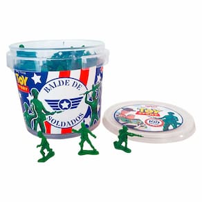 Conjunto de Bonecos - Disney Toy Story - Balde de Soldados - Toyng: faça parte das aventuras de Toy Story com os soldados em miniatura do Exército Verde. Composto por soldadinhos em posições específicas e fixados às bases, eles são armazenados em um recipiente rotulado Bucket. Os soldados são bastante disciplinados com a regra de "não deixar ninguém para trás" e são mestres em reconhecimento. Este balde vem com 100 soldadinhos altamente detalhadas em diferentes posições. Este fiel exército está pronto para a diversão e nenhum homem ficará para trás. Detalhes: • Balde com 100 soldadinhos inspirados em Toy Story • 100 soldados altamente detalhados em diversas posições • 01 balde para armazenamento das peças • Dimensões das peças: 4.5 x 03 x 01 cm aproximadamente • Dimensões do balde: 13 x 13.5 x 13 cm aproximadamente Informações: • Produto: Balde 100 Soldados Toy Story • Marca: Toyng • Coleção: Toy Story • Linha: Disney • Tipo: Conjunto de Figuras • Categoria: Bonecos e Cia • Tamanho (C x A x L): - Dimensões das peças: 4,5 x 03 x 01 cm - Dimensões do balde: 13 x 13,5 x 13 cm • Conteúdo: 01 balde com 100 peças • Recomendação: para crianças a partir de 03 anos de idade Especificações: • Referência: 51237 • Código de Barras: 7899871621840 • Embalagem (C x A x L): 13 x 13,5 x 13 cm • Embalagem (Peso): 0.235 kg • Composição / Material: Plástico • Registro: 007702/2023 • Certificado: Órgãos Autorizados - OCP´S (Organismos de Certificação de Produtos) Aviso: • As imagens são meramente ilustrativas • Os pesos, tamanhos e medidas são aproximados • As cores e estampas dos produtos podem ter variações • As informações são de responsabilidade do fabricante ou fornecedor