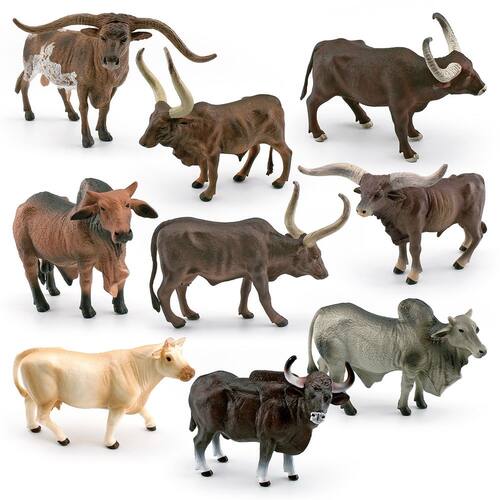 Conjunto de 9 peças de bonecos Longhorn Cattle & Bison — Estatuetas realistas de PVC de Texas Longhorn, Water Buffalo e Charolês Bull para crianças, colecionadores e decorações, 4-16 cm Descrição: Material: PVC Tamanho: 4-16 cm Peso: 1600 g Características: Modelos realistas de gado e bisonte: este conjunto de 9 peças inclui estatuetas detalhadas de Texas Longhorn, Water Buffalo, Charolais Bull e mais, perfeito para entusiastas de animais. Material de PVC de alta qualidade: Feitas com PVC durável, essas estatuetas são resistentes, seguras para crianças e ideais para brincadeiras educacionais ou como peças de exibição. Perfeitos para colecionadores e crianças: esses modelos de gado e bisonte são uma ótima adição a qualquer coleção e também são adequados para crianças de 3 anos ou mais para brincadeiras criativas. Vários tamanhos para exibição versátil: cada estatueta varia em tamanho de 4 cm a 16 cm, o que as torna ideais para prateleiras, salas de aula ou conjuntos de brinquedos. Educacional e divertido: ensine as crianças sobre diferentes raças de gado e bisonte, promovendo a criatividade, habilidades motoras e brincadeiras imaginativas com essas figuras de animais realistas. O que vem na caixa: 9 x Conjunto de bonecos Longhorn Cattle & Bison