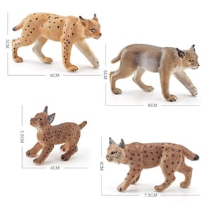 Conjunto de 4 peças de bonecos Lynx Wild Cat, estatuetas realistas de animais de PVC para crianças, inclui modelos de lince para bebês e adultos, brinquedos educacionais sobre vida selvagem, decorações de animais para crianças de 3 anos ou mais Descrição: Material: PVC Tamanho: 3,5 a 9 cm, consulte a imagem para obter detalhes específicos de tamanho Peso: 99 g Características: Estatuetas realistas de lince: este conjunto apresenta quatro modelos de lince altamente detalhados, incluindo linces adultos e bebês, projetados para parecerem um verdadeiro lince selvagem gatos. Seguras e duráveis: feitas de material de PVC premium, essas estatuetas são resistentes, não tóxicas e seguras para crianças de 3 anos ou mais manusearem e brincarem. Conjunto de brinquedos educativos: perfeito para ensinar crianças sobre animais selvagens, este conjunto incentiva o aprendizado sobre o lince e a importância da conservação da vida selvagem. Uso versátil: ideal para brincar, exibir ou como decoração no quarto de uma criança ou em um ambiente de festa. Essas estatuetas também são ótimas adições às coleções com temas de animais. Ótimo presente para crianças: uma escolha fantástica para jovens amantes de animais, oferecendo diversão e valor educacional, ao mesmo tempo em que aprimora as brincadeiras criativas. O que vem na caixa: 4 x Conjunto de bonecos Lynx Wild Cat