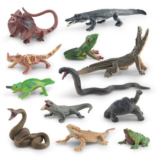 Conjunto de 12 peças de figuras realistas de anfíbios e répteis, modelos animais de PVC de cobras, lagartos, sapos, tartarugas e muito mais, brinquedos educativos para crianças, estatuetas de animais para decoração Descrição: Material: PVC Tamanho: 1,5 a 8,1 cm Peso: 56 g Características: Grande variedade de figuras de animais: este conjunto de 12 peças inclui modelos detalhados de anfíbios e répteis em PVC, como sapos, tartarugas e lagartos, cobras e camaleões, exibindo texturas e cores realistas. Perfeitas para aprender e brincar: projetadas para crianças de 3 anos ou mais, essas figuras de animais oferecem uma oportunidade educacional para explorar anfíbios e répteis, ao mesmo tempo em que incentivam a criatividade e as brincadeiras imaginativas. Decorações versáteis: essas estatuetas de animais realistas são perfeitas para uso como cobertura de bolo, decoração de festas ou como peças de exibição exclusivas em uma coleção de vida selvagem ou em uma sala de aula. Material seguro e durável: Feitos de PVC não tóxico, esses bonecos são seguros para crianças pequenas e duráveis o suficiente para resistir a brincadeiras de longa duração, garantindo que permaneçam em excelentes condições. Tamanho ideal para diversão e exibição: cada boneco varia em tamanho de 1,5 cm a 8,1 cm, o que os torna ideais para brincadeiras interativas, para fins educacionais e para exibição em uma coleção ou decoração temática. O que vem na caixa: 12 x Conjunto de figuras realistas de anfíbios e répteis